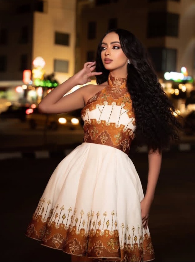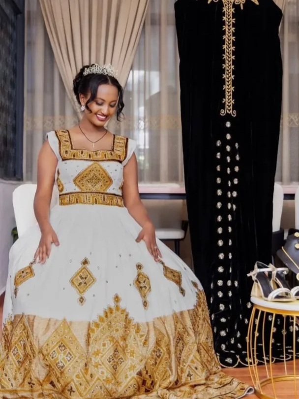 Radiant Ethiopian Dress with Gold Embroidery and Cream Fabric from the Top Diaspora Source