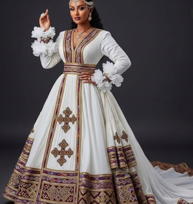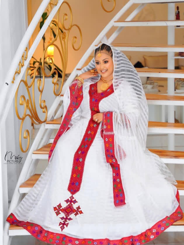 Beautiful Ethiopian Bridal Dress with Rose Tilet from the Most Loved Habesha Store